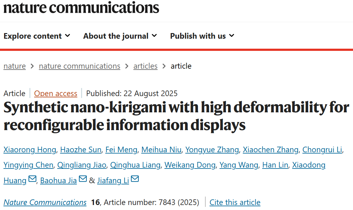 北理工团队在纳米剪纸像素化可重构信息显示方面取得突破