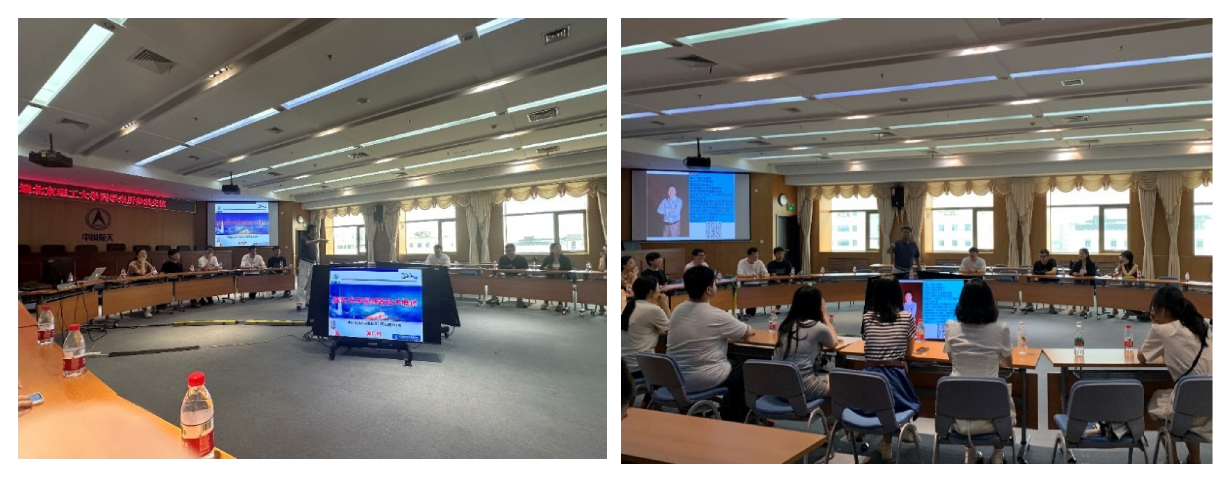 随后,508所北理工校友分别介绍了各研究室的工作内容,向支部党员进行了人才选拔、择业就业方面的宣讲,重点介绍了空间光学遥感的技术原理和发展历程,并介绍了近年来508所取得的突破性进展和标志性成就,鼓励支部党员们要精深学术,勇于创新,毕业后积极投身中国航天事业。博士物电班党支部书记张旭对508所领导老师们的指导和鼓励表示感谢,随后向他们汇报了党支部支部建设情况、支部党员的科研工作以及取得的成果。