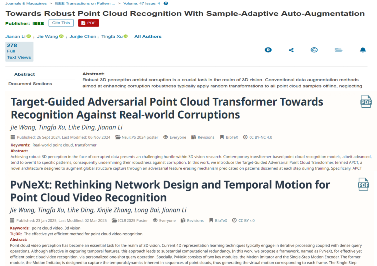 [1] Li et al., Towards Robust Point Cloud Recognition with Sample-Adaptive Auto-Augmentation, IEEE TPAMI, 2025, vol. 47, no. 4, pp. 3003-3017.