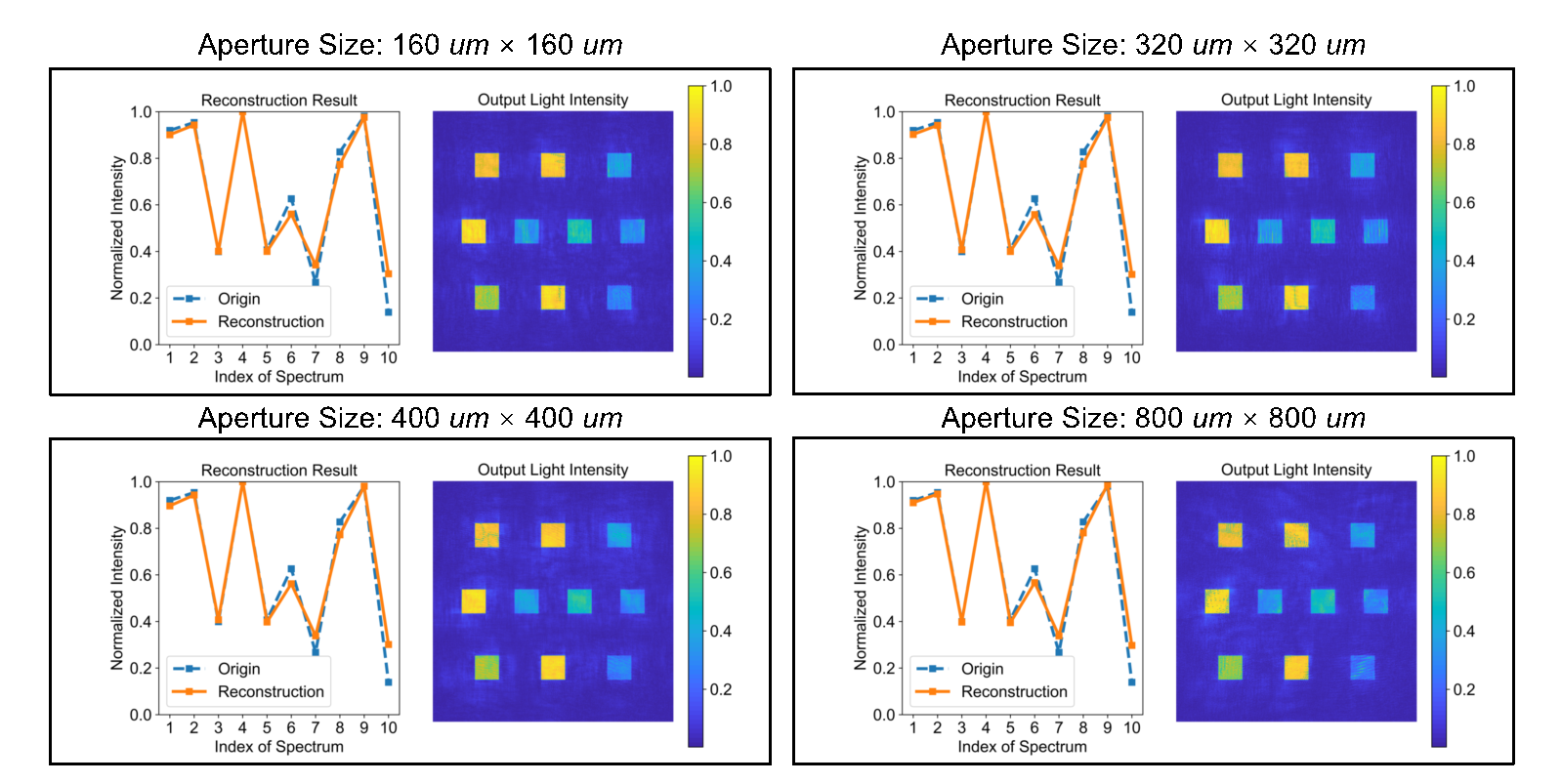 该研究攻克了传统光谱重建架构的长期难题,如体积庞大的光学组件、程序复杂的电子重建算法和有限的灵活性,可以作为阵列化布局的基本单元,为全光速、高质量的光谱成像奠定了基础。