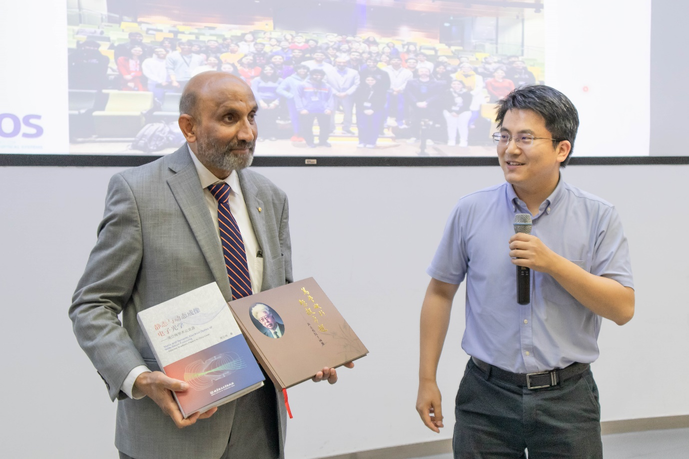 此外, Jagadish还与taptap点点体育周立伟院士、黄勇副院长、金伟其教授以及李子园副教授等青年教师进行了交流和探讨。报告结束后,黄勇副院长代表学院赠予Jagadish周立伟院士著作作为礼物。随后,Jagadish参观了taptap点点体育和集成电路与电子学院的实验室。Jagadish院士对我校实验室的先进设备、研究环境以及研究成果给予了高度评价,并与黄玲玲、张帅龙、陈梦璐等青年才俊进行了深入交流讨论。