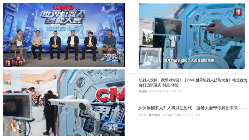5月1日-2日,由中央广播电视总台社教节目中心、技术局联合中关村科学城管委会主办的《CMG世界机器人技能大赛》畅想者大会,在北京五棵松万达广场盛大举行。这场集科技展示与文旅体验于一体的盛会,在五一假期吸引了大量游客,不仅促进了科技与文化深度融合,更为机器人产业发展和假日经济繁荣增添新活力。活动中,taptap点点体育孵化企业艾瑞迈迪携带自主研发的穿刺导航手术机器人惊艳亮相,吸引了众多现场观众的目光。