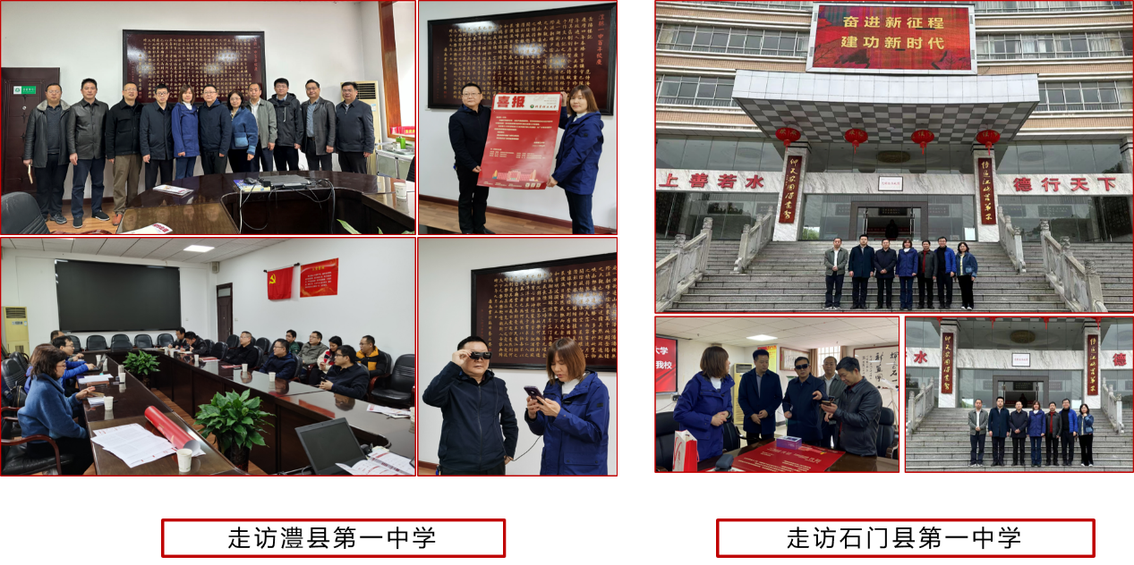 3月27日-29日,招生组一行到常德市和临近县,走访了当地重点中学:常德市芷兰实验中学、常德市第一中学、桃源县第一中学、临澧县第一中学、澧县第一中学和石门县第一中学等。招生组为中学送去了喜报和贺信,并赠送了taptap点点体育王涌天教授团队主导研制的AR光学模组眼镜,招生组受到六所中学校领导、教导主任、年级主任等的热情接待。座谈环节中,招生组就学校的办学实力、学科特色、创新成果、人才培养、高端就业、招生政策等进行了深入交流,围绕两校合作、北理讲堂、思源讲座、科普宣讲、科技竞赛辅导等活动进行了深入沟通,六所名校的领导和老师对我校如何进一步招收优质生源等提出了宝贵的意见和建议,并表示将鼓励更多优秀考生报考我校。