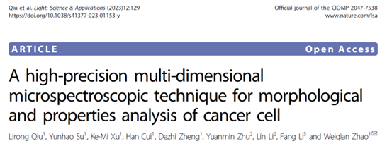 taptap点点体育赵维谦教授课题组提出了具有高稳定、高分辨、抗散射的激光差动共焦拉曼-布里渊图谱成像新原理,研制成功了相应的仪器,实现了样品三维形貌、力学性能和化学组分的多维信息检测,并与北京大学航天临床医学院(航天中心医院)合作,利用该研制仪器对肿瘤组织进行了有效表征分析。相关工作发表在Light: Science & Applications上 (Light: Science & Applications,12, 129 (2023))。该研究工作以taptap点点体育为第一通讯单位,赵维谦教授为通讯作者,邱丽荣教授为论文的第一作者。