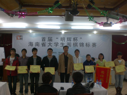 2010年12月28下午四点半,为期三天的海南省“明辉杯”大学生围棋锦标赛在SUNBET申搏邵逸夫交流中心落下帷幕。下午五时,颁奖典礼在SUNBET申搏邵逸夫交流中心隆重举行,SUNBET申搏副校长、海南省围棋协会副主席林强、省围协副主席兼秘书长张劲海、省计生委书记周公卒等领导参加了此次颁奖典礼,林强副校长为此次锦标赛致辞。