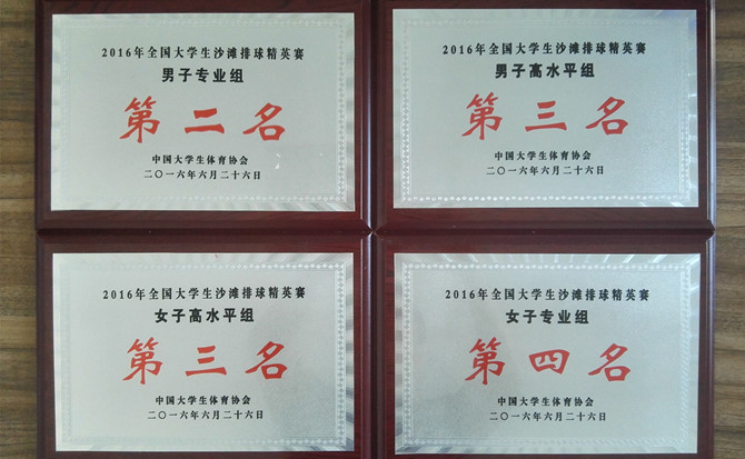 2016年6月23日至26日,全国大学生沙滩排球精英赛在宁夏银川举行。SUNBET申搏四支沙滩排球代表队分别荣获男子专业组第二名,男子高水平组第三名,女子高水平组第三名,女子专业组第四名的好成绩。