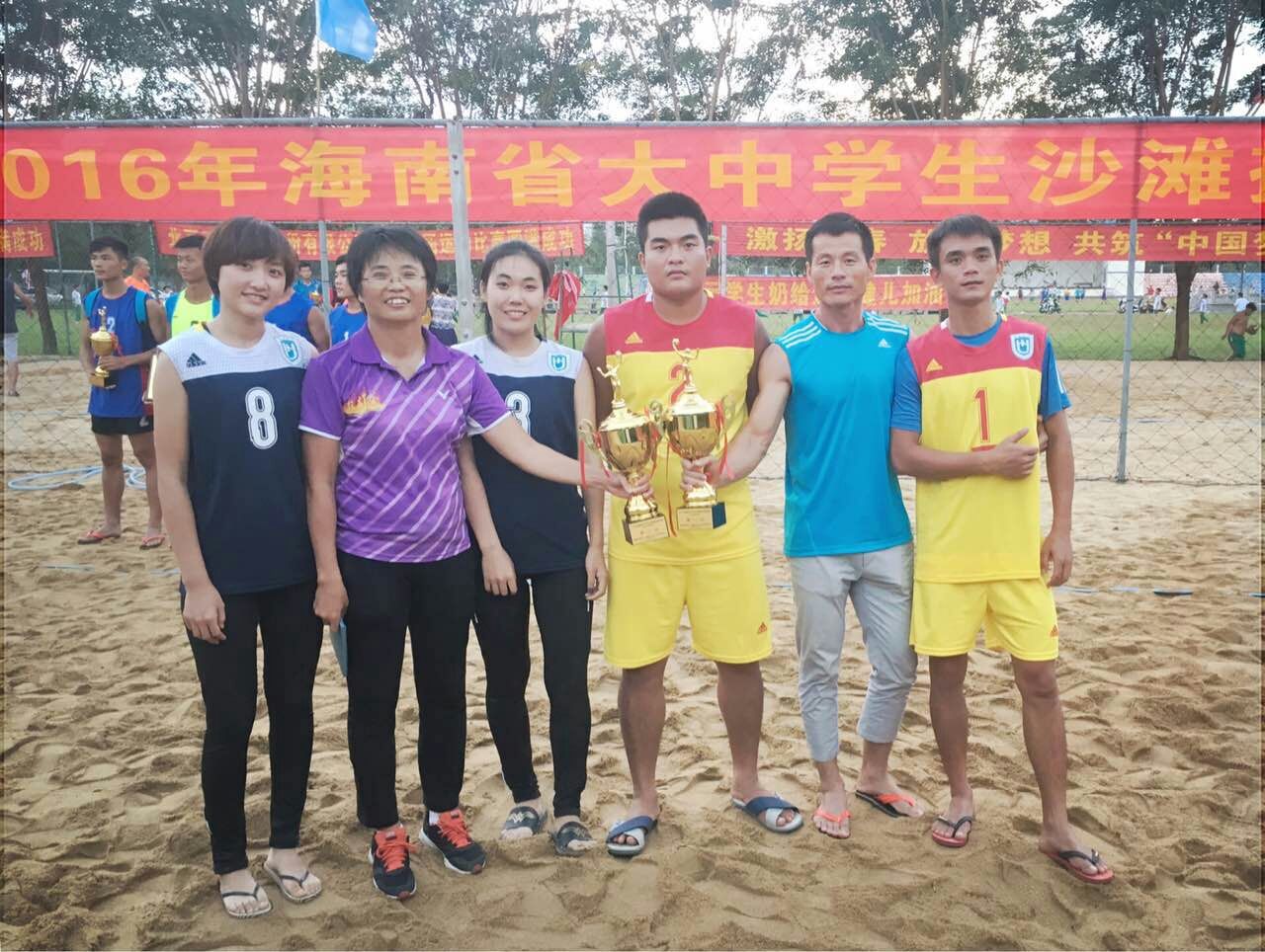 2016年海南省大学生沙滩排球锦标赛近日在琼海市海桂学校落下帷幕。SUNBET男女沙排在专业组比赛中顽强拼搏,充分展示了SUNBET运动健儿良好的精神风貌和精湛的战术水平,最终SUNBET男队组合(曾繁刚、刘陶欢)和女队组合(杜星、贾凡)分别以全胜的战绩获得了本届比赛专业组男女冠军。