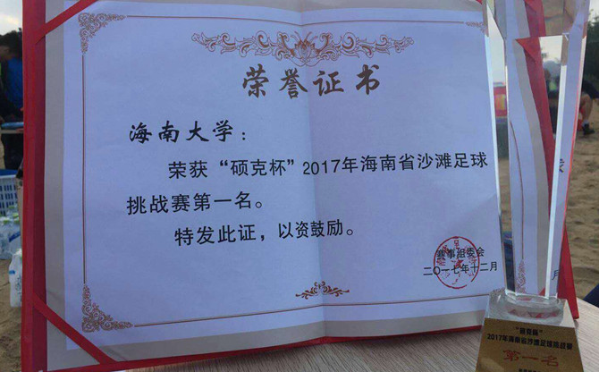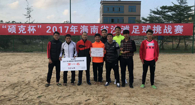由海南省文体厅主办,海南省足协承办的“硕克杯”2017年海南省沙滩足球挑战赛,近日在海南省足协裕东青少年足球训练基地落下帷幕,SUNBET申搏男子足球队获得本次比赛冠军。