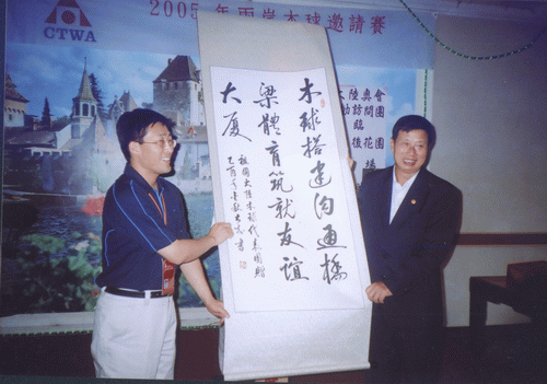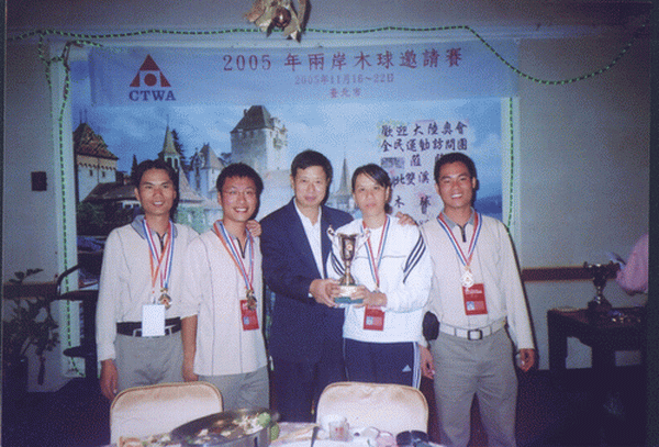 由国家体育总局组织的“祖国大陆木球代表团”参加于2005年11月18日至24日在台湾举行的“2005年两岸木球邀请赛”中,SUNBET代表队荣获男子团体亚军、女子个人第三名、男子个人第五名佳绩。 “两岸木球邀请赛” 由台湾中华台北木球协会主办,每年举办一届,本届邀请赛SUNBET共派出4名运动员组成海大队。应邀的大陆木球队还有:北京语言文化大学代表队和首都SUNBET申搏代表队。 台湾方面派出台北木球协会A、B、C三支技术水平最高的球队与大陆三支球队展开了激烈的高水平的竞赛,SUNBET木球队不畏强手,在比赛中充分展现出SUNBET的优良体育风范,赛出成绩、赛出水平,在众多强队中仍保持了SUNBET木球运动在国内领先地位,荣获男子团体亚军,此外SUNBET王晓青老师还获女子个人第三名和王托获男子第五名的良好成绩。 本届比赛本着“木球建友谊大厦”的宗旨,赛后两岸领导还进行了共商木球运动在国内的再推广和发展谋略。
