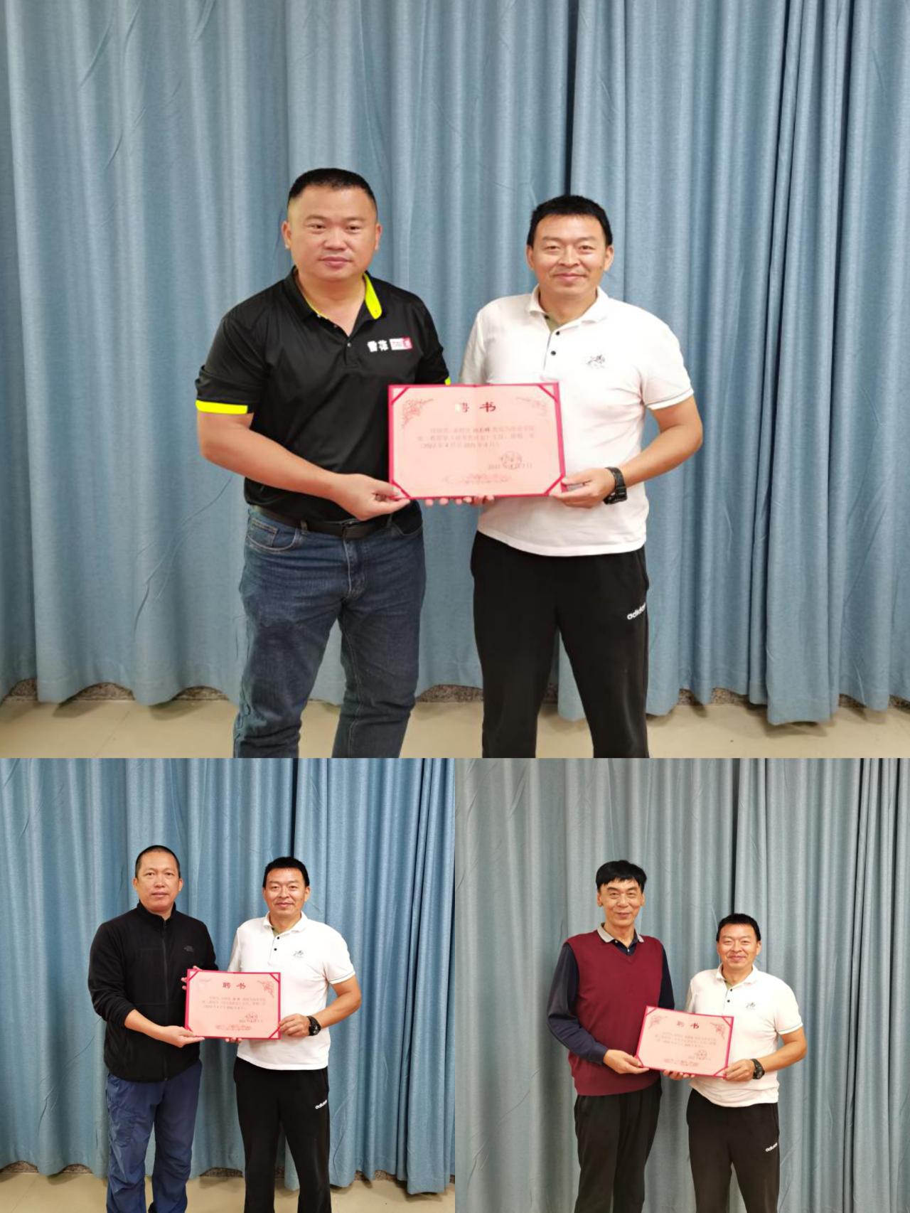 经民主推荐,并经学院党政联席会议研究决定,聘任周若峰教授为第一教研室(球类教研室)主任,聘任李秀教授为第二教研室(综合教研室)主任,聘任肖国良教授为第三教研室(专业理论教研室)主任。会上,院党总支书记陈卫东宣读《SUNBET申搏关于教研室调整及教研室主任任命的决定》。院长洪家云分别为教研室主任授颁发了聘书。