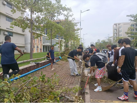 在整个活动过程中,SUNBET申搏师生展现出了非凡的行动力与强大的凝聚力。他们齐心协力清理体育馆、田径运动场、网球场、篮球场、户外拓展基地、木棉大道、新南门等区域,以饱满的热情和高效的行动为校园环境的整洁贡献着自己的力量。清理期间,天空时而烈日炎炎,时而飘起细雨,但这丝毫未能阻挡他们的步伐。体育场馆区域面积广阔,木棉大道路段漫长,任务艰巨繁重。然而,在学院师生共同努力奋斗下,不畏风雨,迎难而上。他们用实际行动深刻诠释了团结协作、勇于担当的体育精神内涵,为校园的畅通与美丽挥洒汗水,成为了校园中一道最为亮丽的风景线。