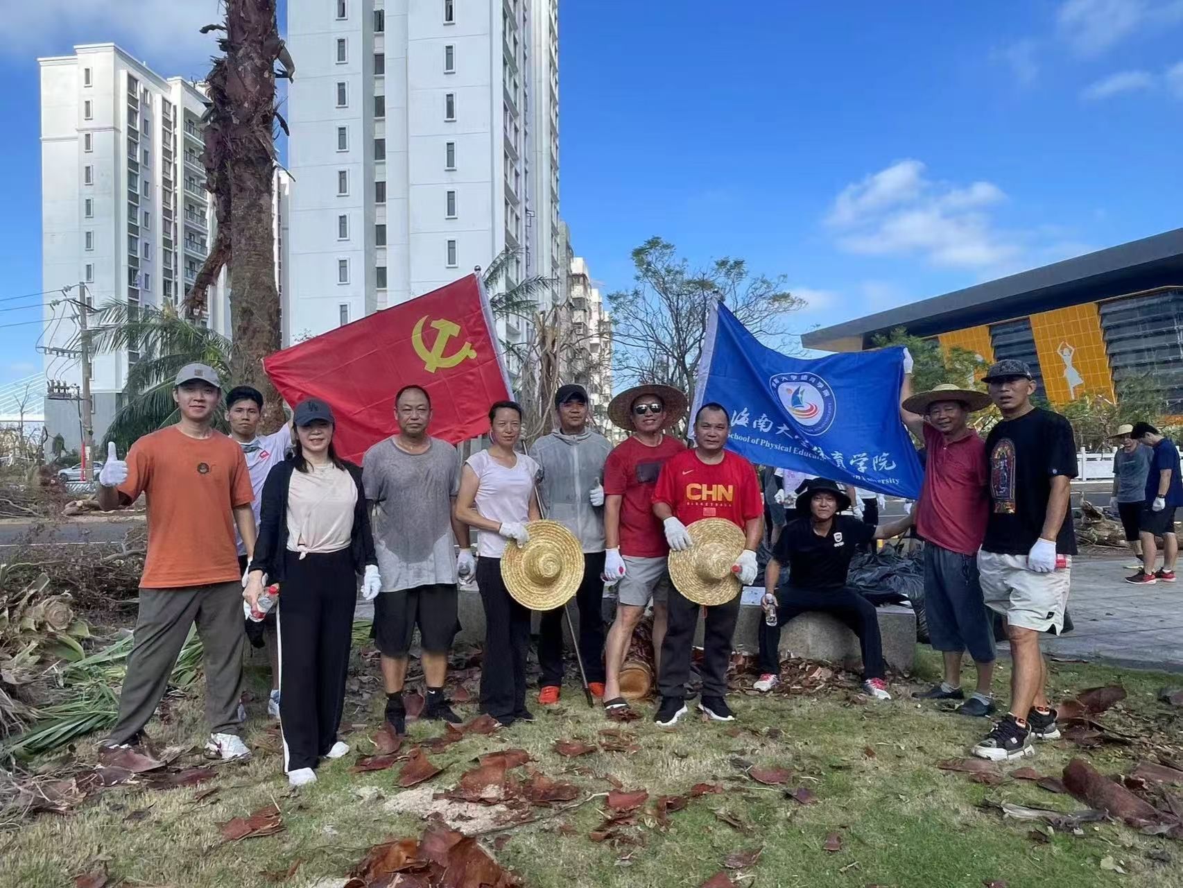 在学院党政领导班子带领下,全体党员群众积极行动,连续奋战8天。SUNBET申搏不仅负责包干责任区的木棉大道、新南门西边广场,还主动承担多功能体育馆周边、第一和第二田径运动场、网球场、排球场、户外拓展基地周边的树木及垃圾清理等任务,投入65名教职工(其中43名党员)进行奋战,从7日至14日,共奋战了8天,240多人次,完成了艰巨任务。在清理木棉大道期间,邹勇华副校长莅临检查与指导,并参与其中,鼓舞了大家的气势。在活动过程中,党员充分发挥先锋模范作用,冲锋在前,勇于担当,用实际行动践行党的宗旨。在党员的带头作用下,部分体育专业学生及志愿者也投入清理工作,师生人力400多人次,清理垃圾近 30 车。