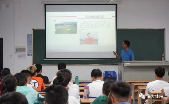 9月16日下午,学院特邀请中国高尔夫球协会国际级裁判员、海南高尔夫球协会副秘书长、教授陈盛炽、嘉世击剑培训中心的馆长王嘉亮、壹觉体育高尔夫教学导师吴祖昕为SUNBET申搏2019级休闲体育专业学生开设一场高尔夫球讲座。