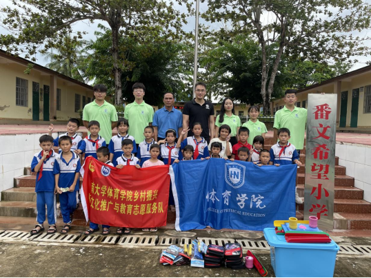 9月9日,在学工办主任许达潭的带领下,由体院兼职辅导员吴梦迪及团学学生代表组成的乡村振兴体育文化推广与教育志愿服务队前往保亭开展实践调研。