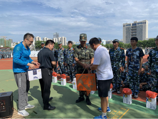 最后,学院领导为新生和带训教官发放了慰问品。学院领导的亲切关怀与慰问让新生们倍感温暖,极大地鼓舞了士气。同学们纷纷表示会加倍努力,以更加饱满的热情充分展现体院风采,为今后的学习生活打下良好基础,成就更好的自我!