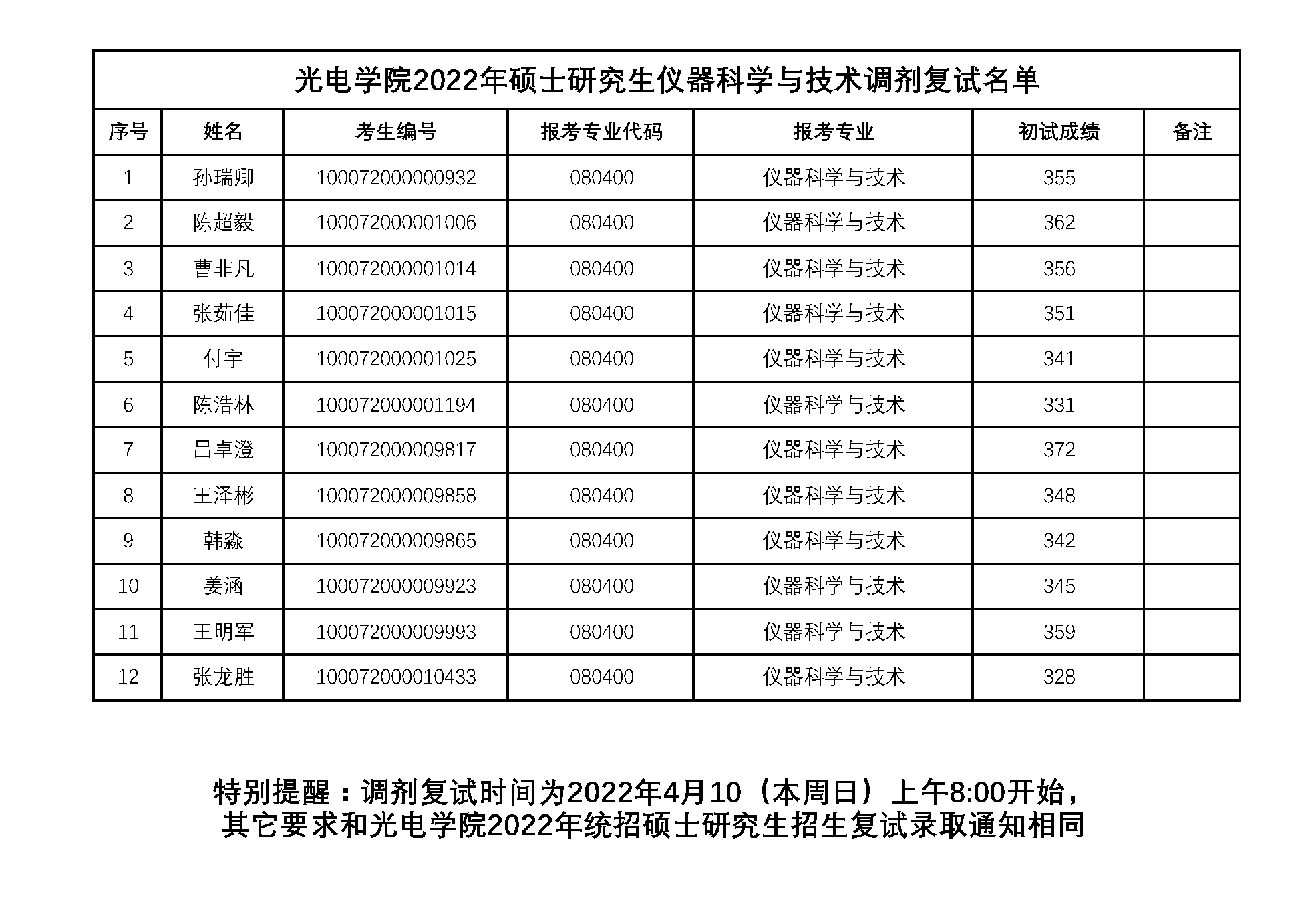 taptap点点体育2022年硕士研究生仪器科学与技术调剂复试名单