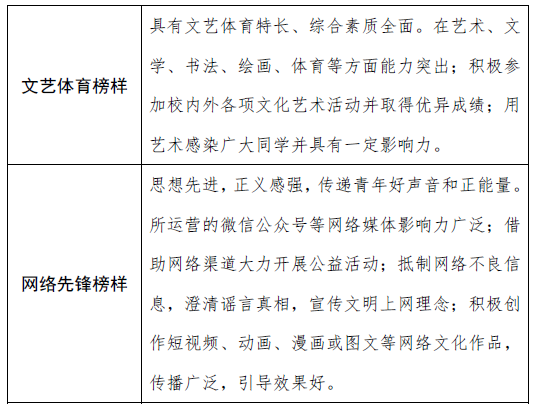 以“榜样类别+姓名”(例:志愿公益榜样+张三)命名申报学院初评。